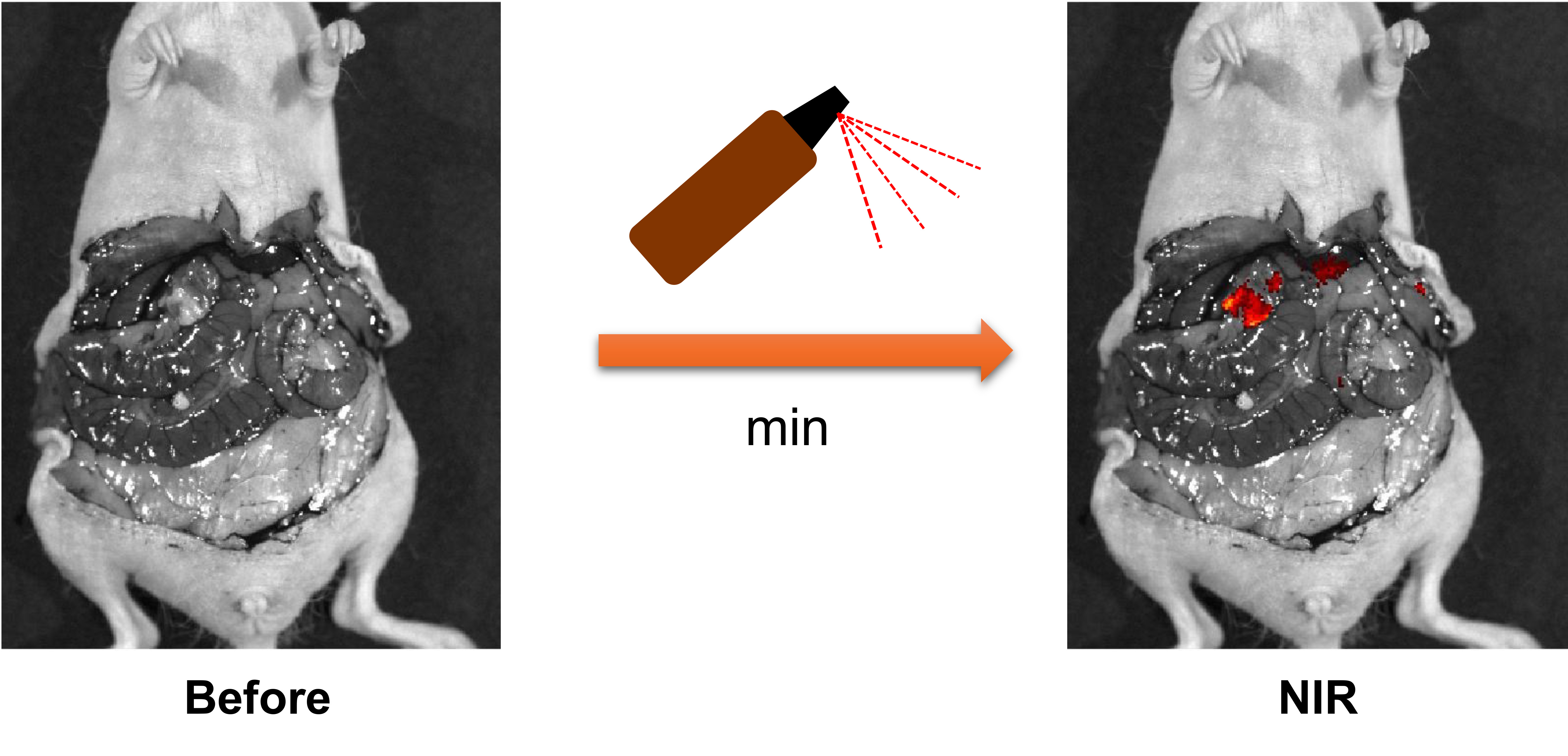 Instantaneous visualization of peritoneal tumors using a pH-responsive near-infrared (NIR) fluorogenic spray.